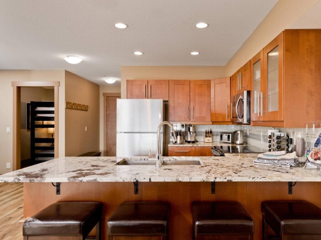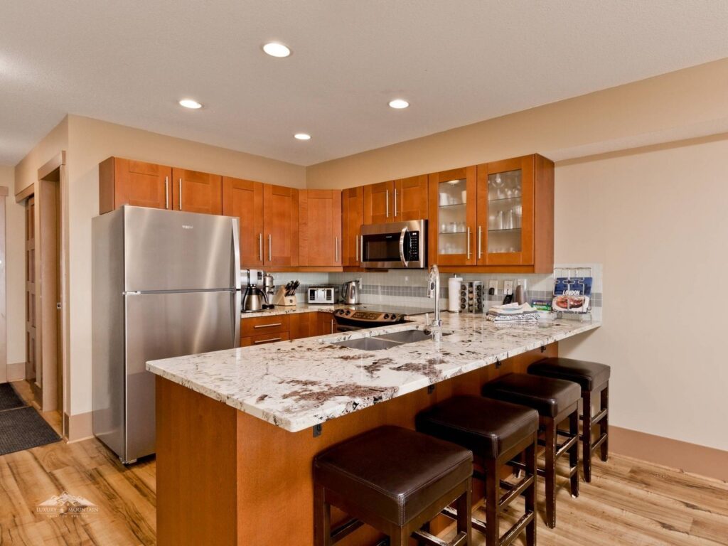 The Aspens is a great place to stay if ski-in/ski-out is your priority, as the condo buildings back directly onto the Highway 33 ski run, and the townhomes are a 30 second walk away from the run. Ski-out provides easy access to the Village center (and in turn Ridge Rocket, Snowghost and Plaza chairlifts) as well as the Bullet Express, Black Forest & Telus Park chairlifts. Have a look at our properties in the upper village here!